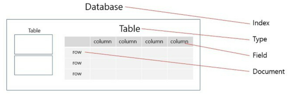 기존에 RDB를 많이 써 왔다면 Elasticsearch에서 사용하는 키워드와 매칭을 하기 쉽다. 다만, 인덱스와 타입에 대해 주의할 점이 있다.